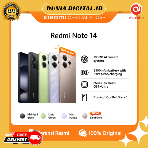 [Star] HANDPHONE Xiaomi Redmi Note 14 108 MP AI camera system 5500mAh 33W Turbo Charging HP TANPA DP [Official Store]