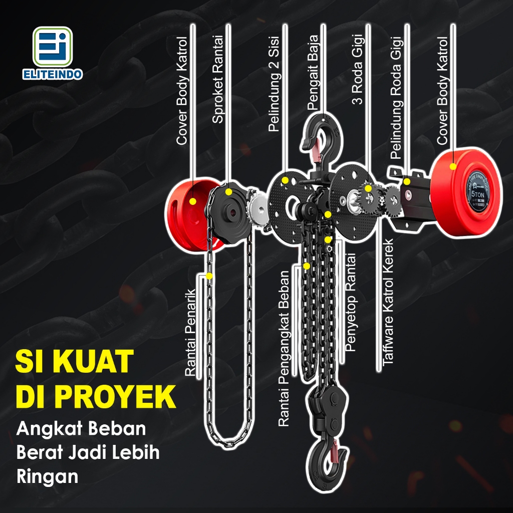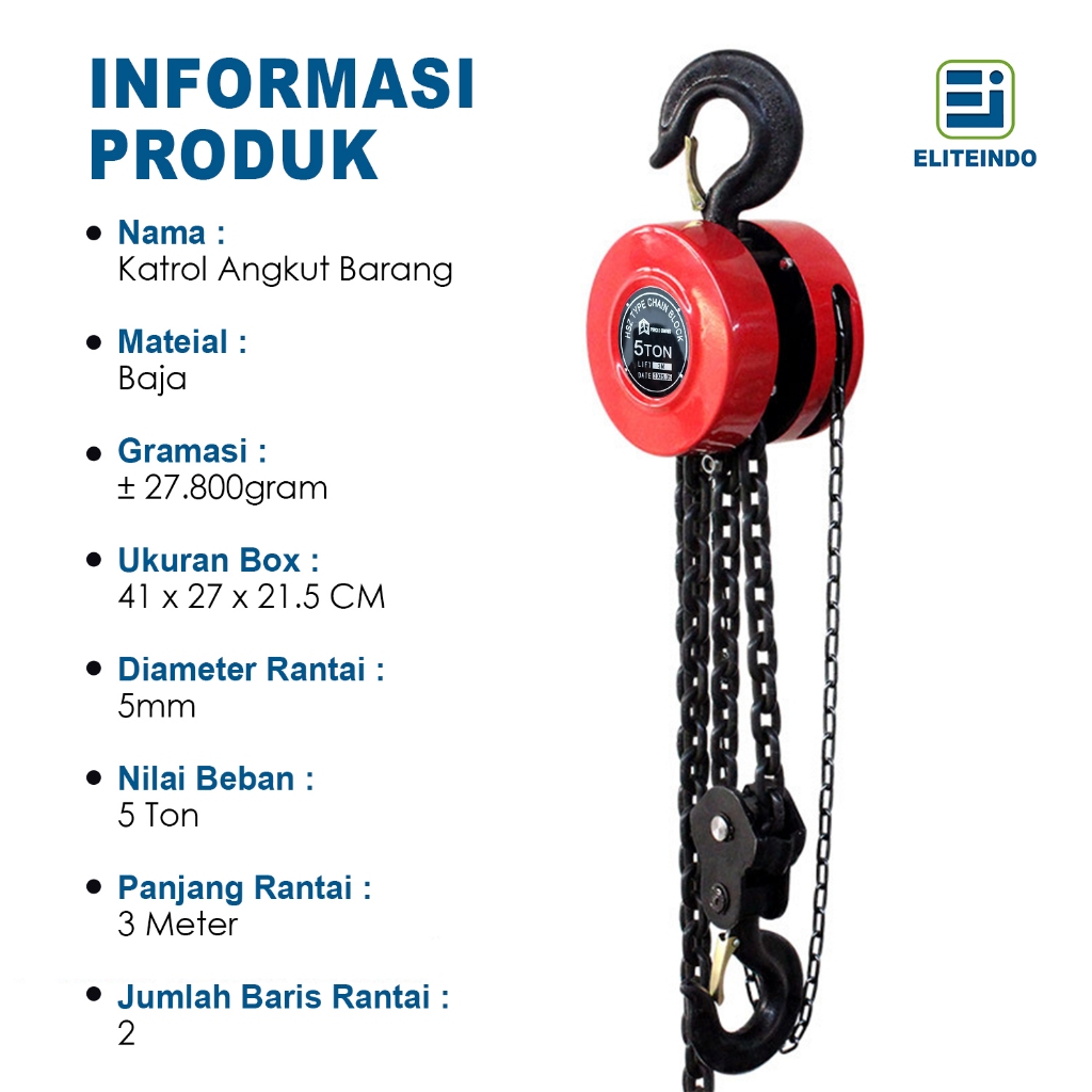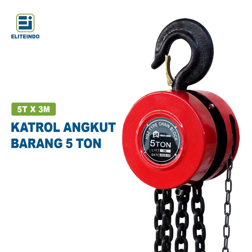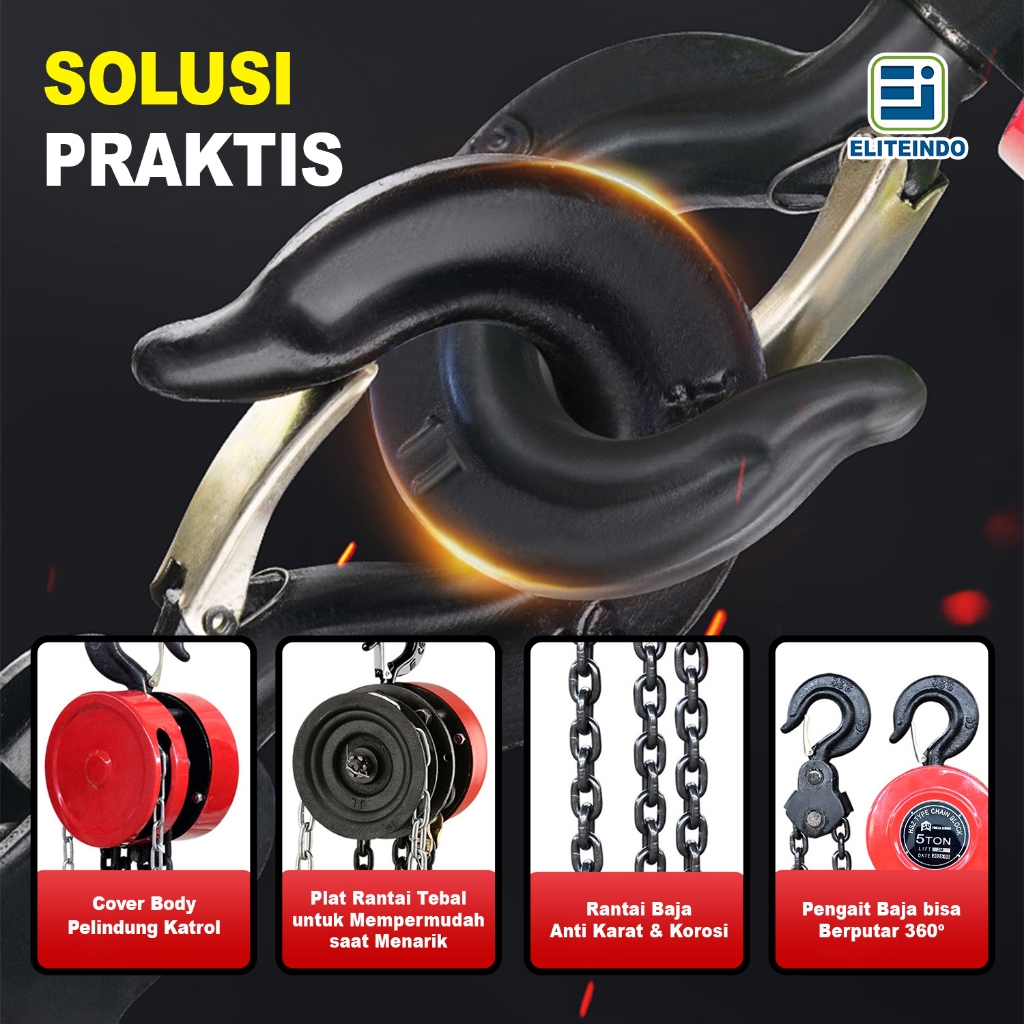 ELITE Katrol Chain Block Kuat 5 TON 3 Meter Baja Alat Angkut Angkat Barang Manual Takel Kerekan G2B4