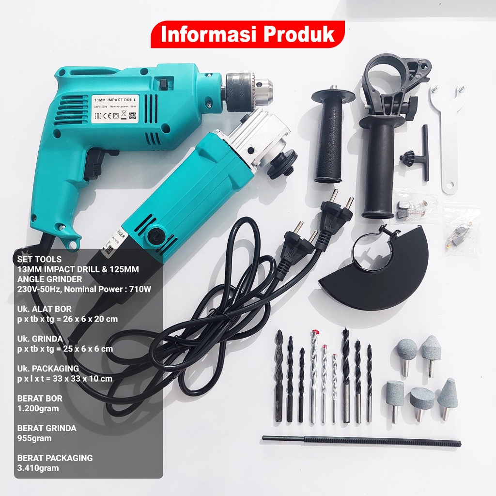 ELITEINDO 13MM Impact Dril & 125MM Angle Grinder Bor Gerinda Set Koper Bor Gurinda Grenda - G10C1