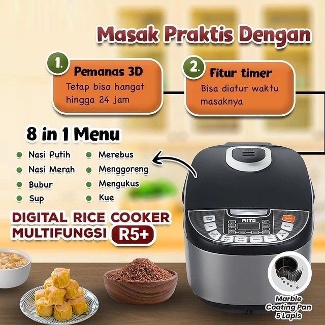 Mito Rice Cooker Magic Com R5 plus Kapasitas 2 Liter 8 in 1 - Original