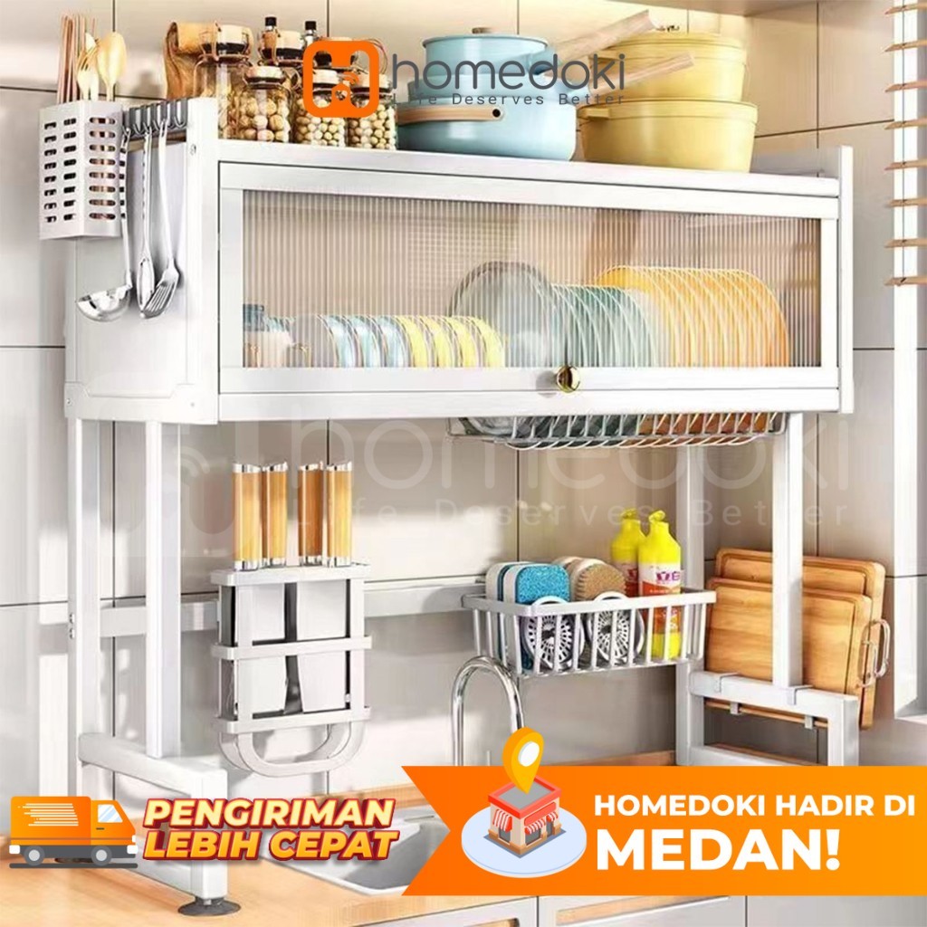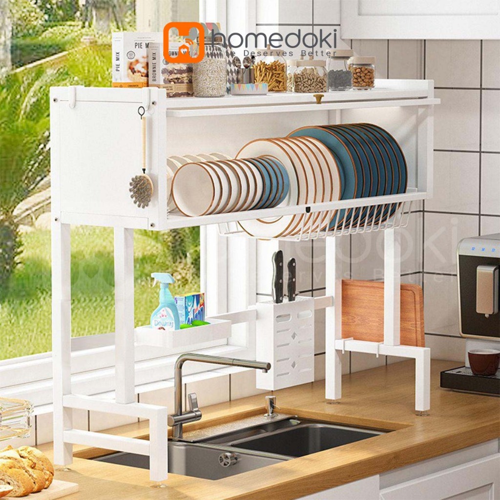Homedoki Rak piring wastafel / rak wastafel dapur / rak di atas wastafel / rak piring besi dapur / rak penyimpanan piring