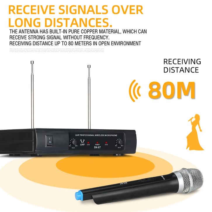 Microphone Wireless Band 2 Handheld Reception Distance 60m Audio Equipment