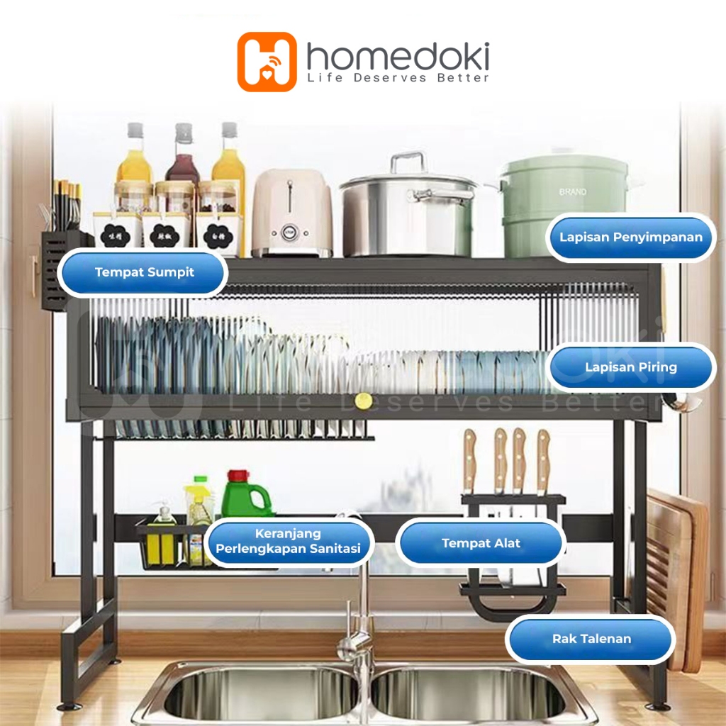 Homedoki Rak Piring Wastafel Stainless/Rak Piring Tertutup/Rak Piring Minimalis/Rak Piring Stainless/Lemari Rak Piring Stainless/Lemari Piring Tertutup