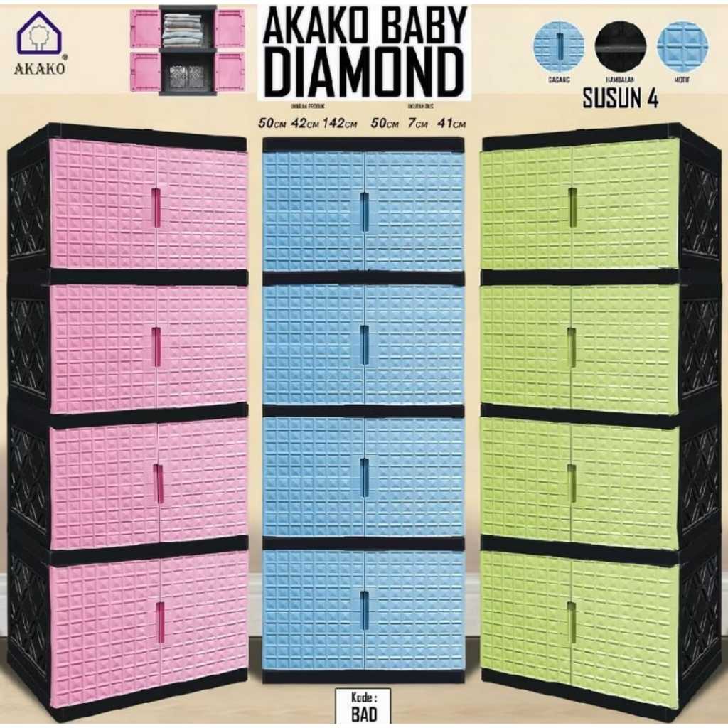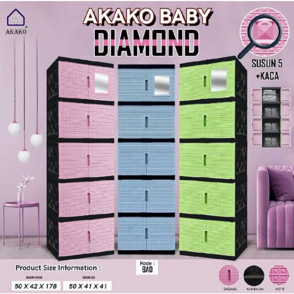AKAKO - Lemari Akako Kaca Bilpin Jumbo Baby Pakaian Plastik Serbaguna 2 Pintu Susun 2, 3, 4, dan 5 Motif BERLIAN / Lemar