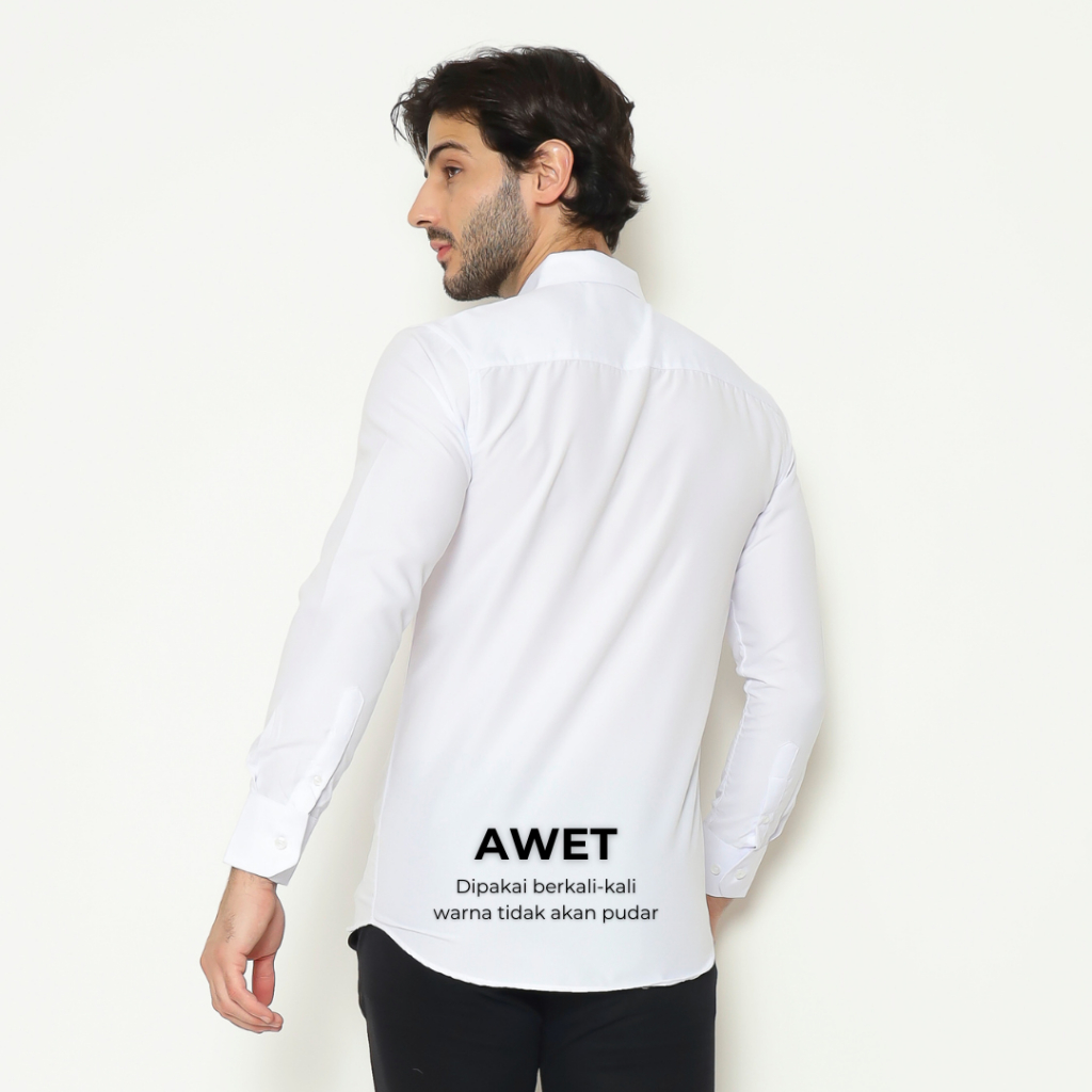 ALMANO Eston Shirt LS White / Kemeja Pria Slim Fit Polos Panjang Putih