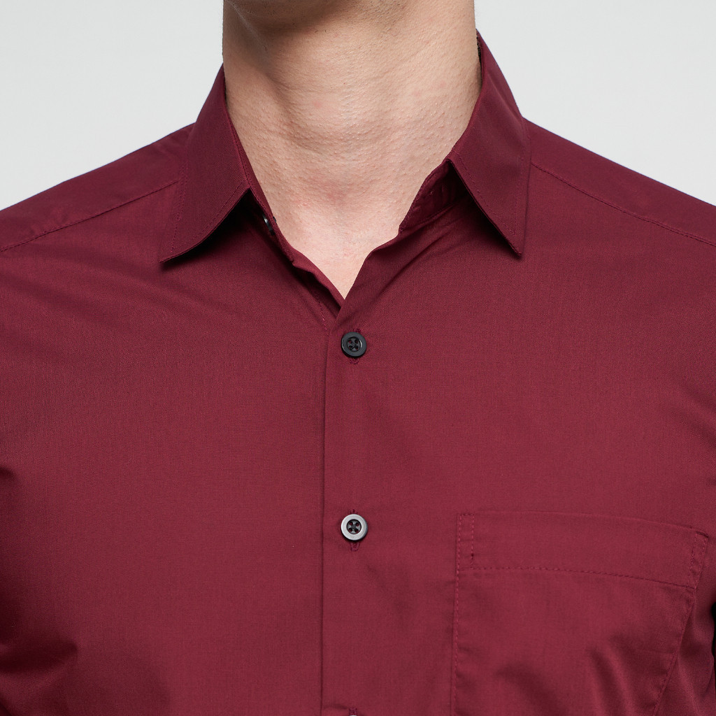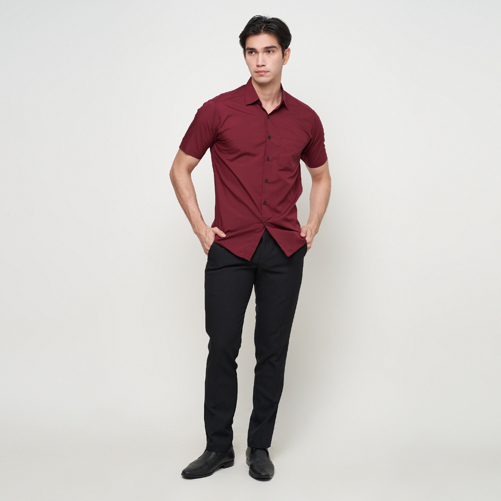 Kemeja Polos Kemeja Formal Pria Atasan Pria Lengan Pendek Maroon OLR148