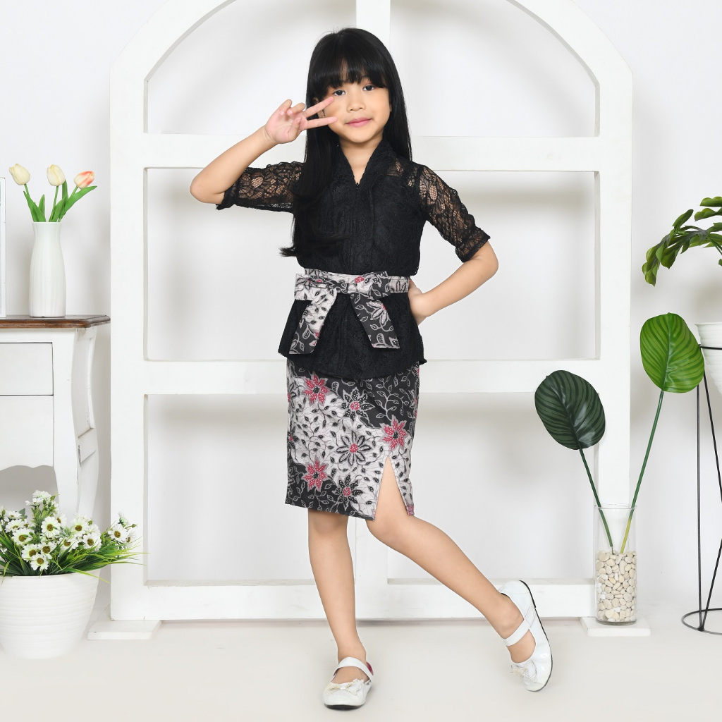 Setelan Kebaya Anak Pesta Kondangan NORA KIDS / Kebaya Batik Kutu Baru Anak Brukat Modern