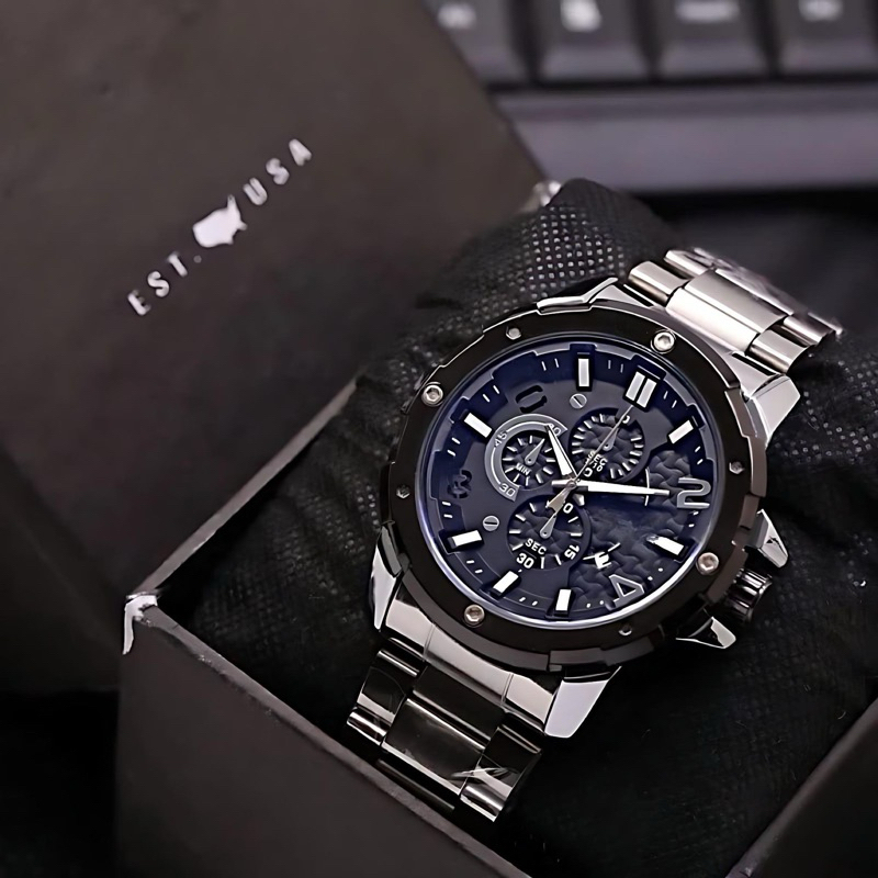 Jam Tangan Pria / Jam Tangan cowo 4 varian Sporty Tanggal Aktif Crono Variasi Rantai Stainless Free Box & Batrai F259S