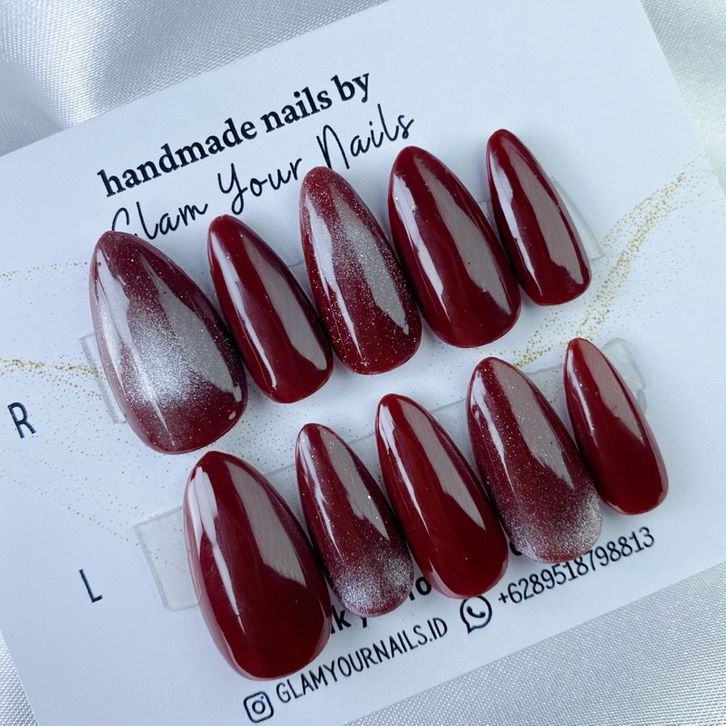 Nail Art Maroon WIINE cat eye fake nails / press on nails murah custom