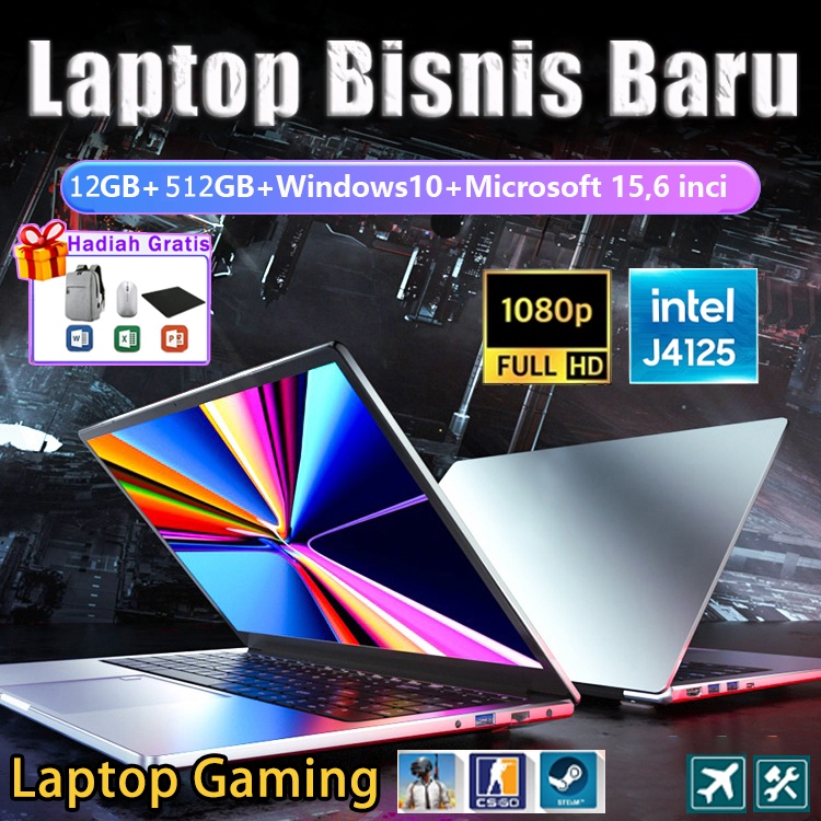 LAPTOP GAMING MURAH LAYAR HD 15,6 INCI INTEL CELERON J4125 12GB+512GB WIN10 TIPIS DAN RINGAN PROFESIONAL EMPAT INTI