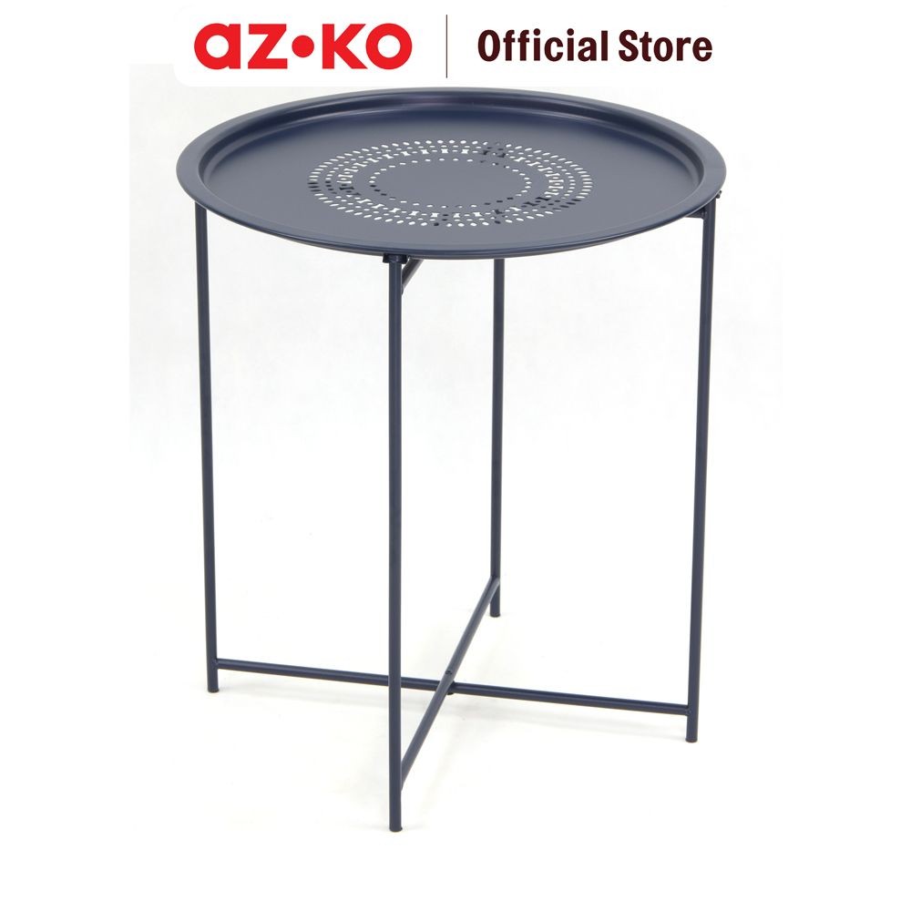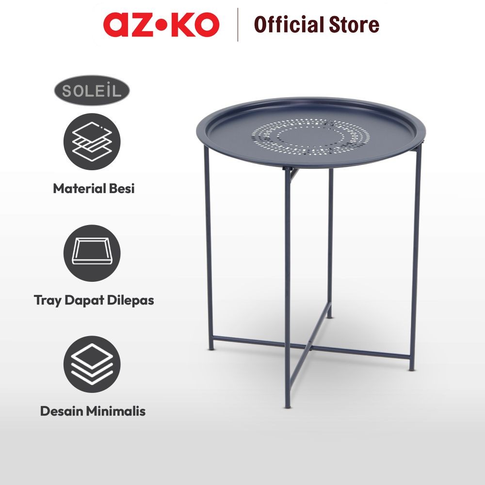TERMURAH AZKO Soleil Meja Teras Dengan Tray - Biru Navy Outdoor Indoor Table Meja Besi Luar Ruangan Balcony Desk Furnitu