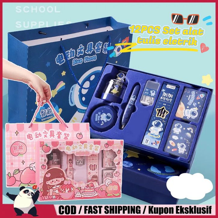 GROSIR 12IN1 Set Alat Tulis / Anak Alat Perkakas Belajar Set / Elektrik Rautan Penghapus Vacum edebc