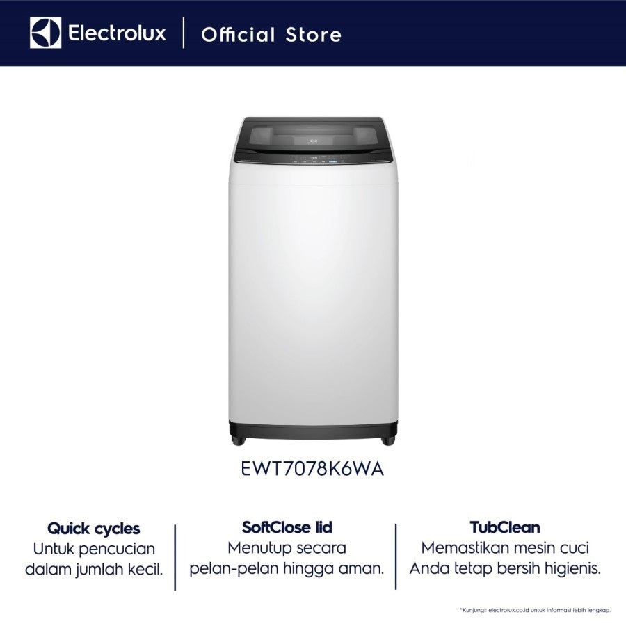 Mesin Cuci ELECTROLUX Top Loading Kapasitas 7Kg 8Kg 9Kg - Hemat Energi - HygieneCare-StainCare-SensorWash-EWT7078K6WA