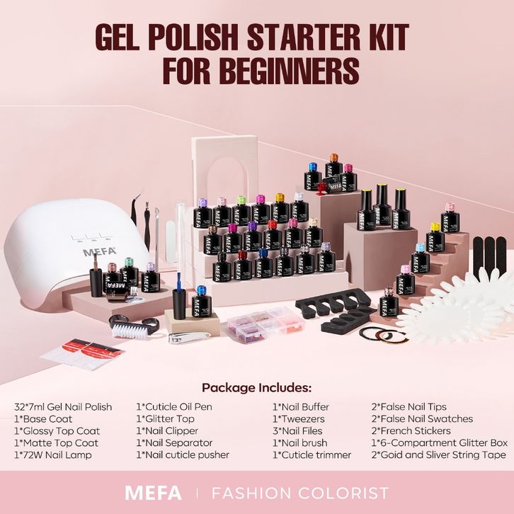 TERLARIS MEFA Nail Art Set 32 Warna Lengkap Gel Nail Polish Kit dengan UV Light Fall Winter Limited Edition Gel