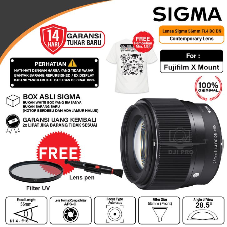 Sigma 56mm f1.4 DC DN Lensa Contemporary Lens for FUJIFILM X Mount