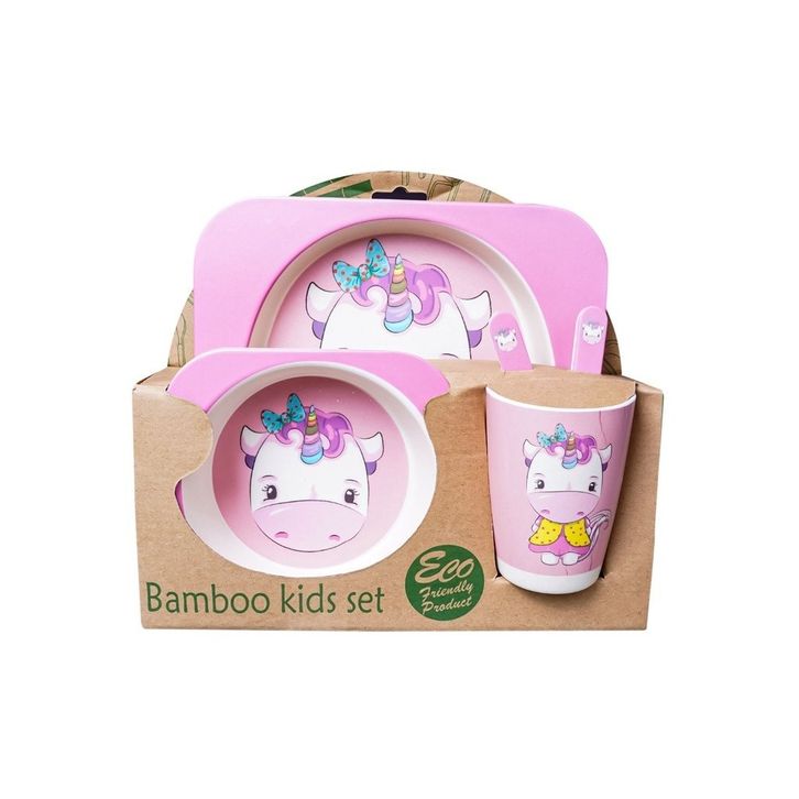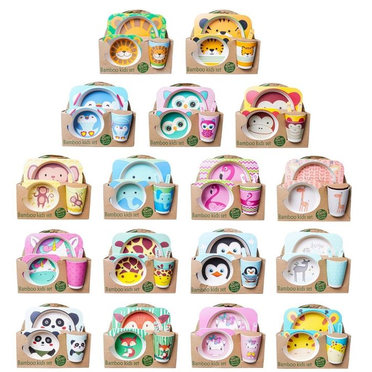 GROSIR Set Alat Makan 5 in 1 Bamboo Fiber Feeding Set Persegi / Piring Makan Anak Balita Peralatan Makan - 005