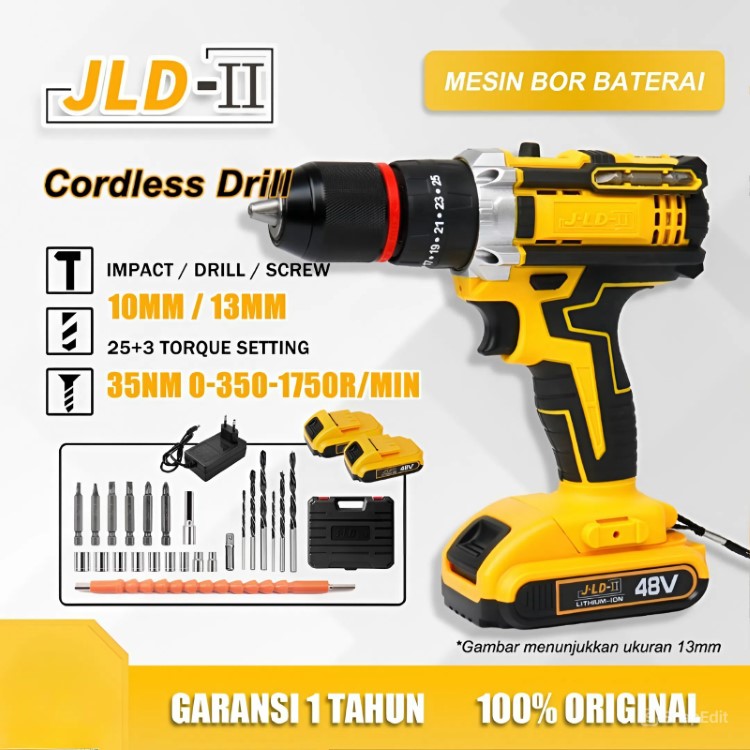 Mesin Bor Baterai Ori Jld 48Vf Bor cas 2baterai Promo 13mm/10mm Bor Impact Fullset Bor Tanpa Kabel Bor Listrik Murah