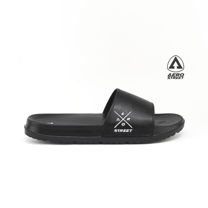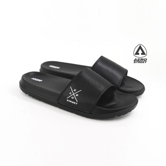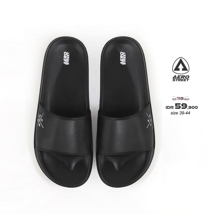 DP 0 AEROSTREET 3944 XENON HITAM HITAM SANDAL SENDAL SELOP SLIP ON CASUAL PRIA WANITA AERO STREET BAAAA 39