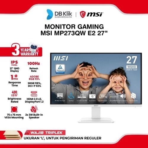 MSI PRO LED Monitor MP273QW E2 27" IPS WQHD 100Hz 1ms Built in Speaker Adaptive Sync HDR400 HDMI DP