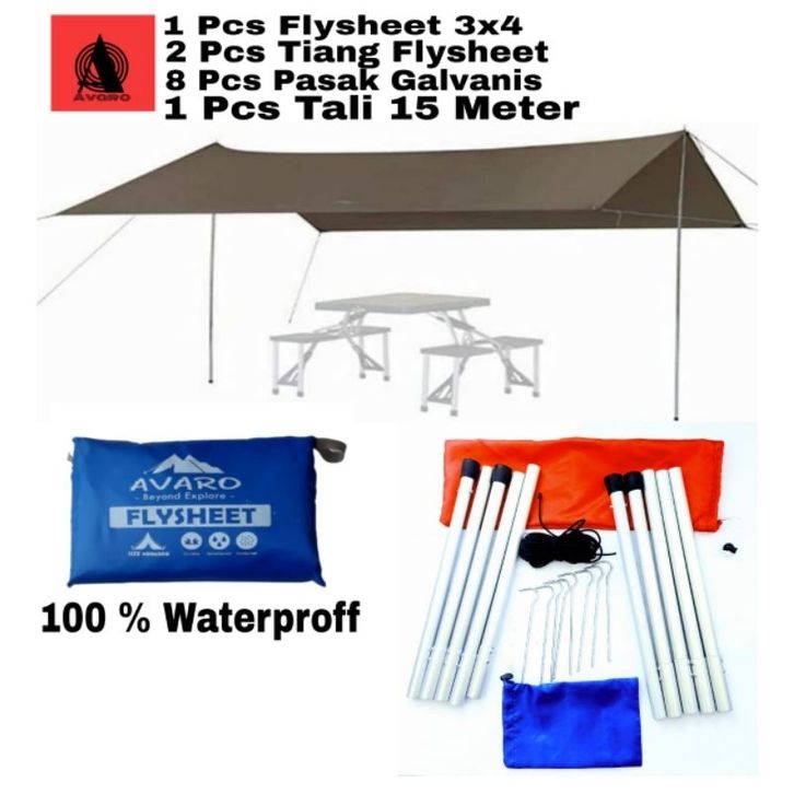 TERBARU Avaro Flysheet 3x4/Tarptent 19Lop + 2 PcsTiang Flyshet + Pasak+Tali agemnc