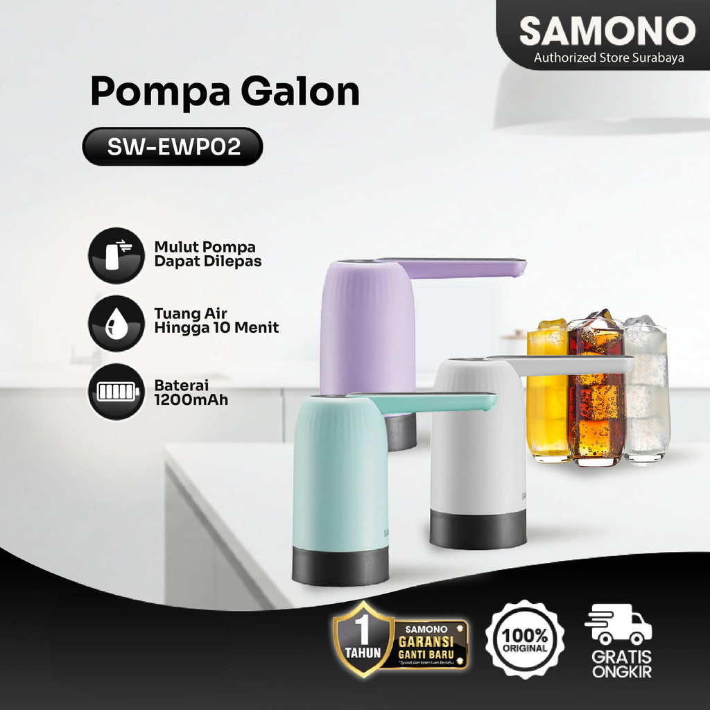 SAMONO Pompa Galon Elektrik USB Rechargable SW-EWP02 | Bisa Dicharge | Otomatis | Type C | Garansi 1 Tahun |Dispensir Air | Pencetan Galon Air | Pompa Galon Electric | Dispenser Air Minum