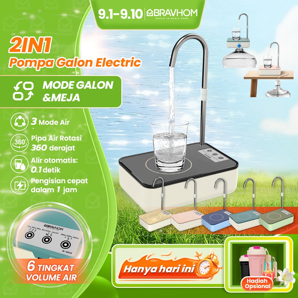 BRAVHOM Pompa Air Galon Elektrik 2in1 Dispenser Air Panas Dingin Rumah dan Luar Rbiayaan BL-WD13