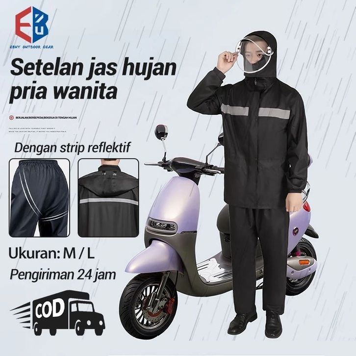Setelan jas hujan pria wanita/Jas hujan oxford anti tembus tahan hujan angin/Setelan jas hujan strip reflektif
