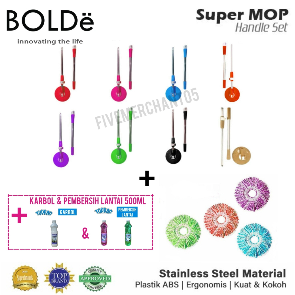 Bolde Handle Set - Gagang - Tongkat dan Kepala Super Mop Ori Tongkat Pel Bolde Supermop Alat PEl