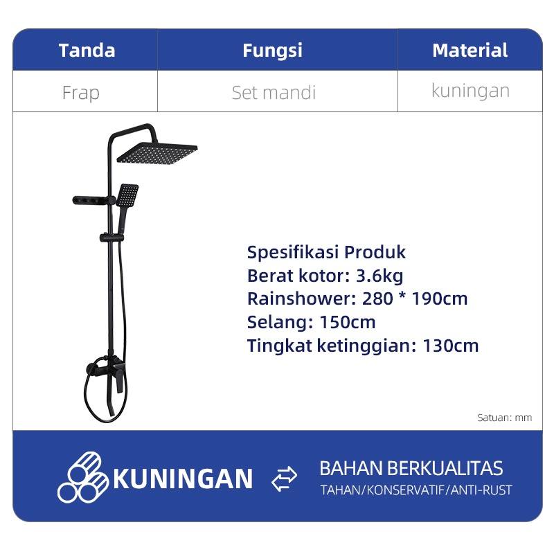 Promo Ongkir FRAP IF2409-6 Paket Lengkap Rain Shower Mandi Hitam Persegi Air Panas dan Dingin - Murah