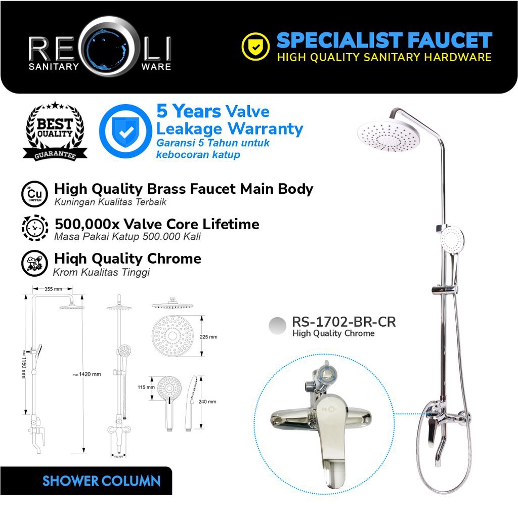 Free Ongkir EOLI Shower Mandi Tiang Set Column Mandi Keran Panas Dingin Mixer Chrome Kuningan 1702 [ Promo Murah ]