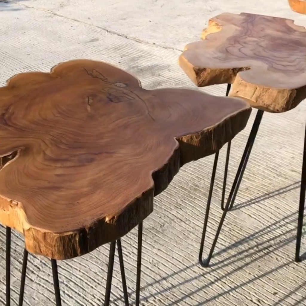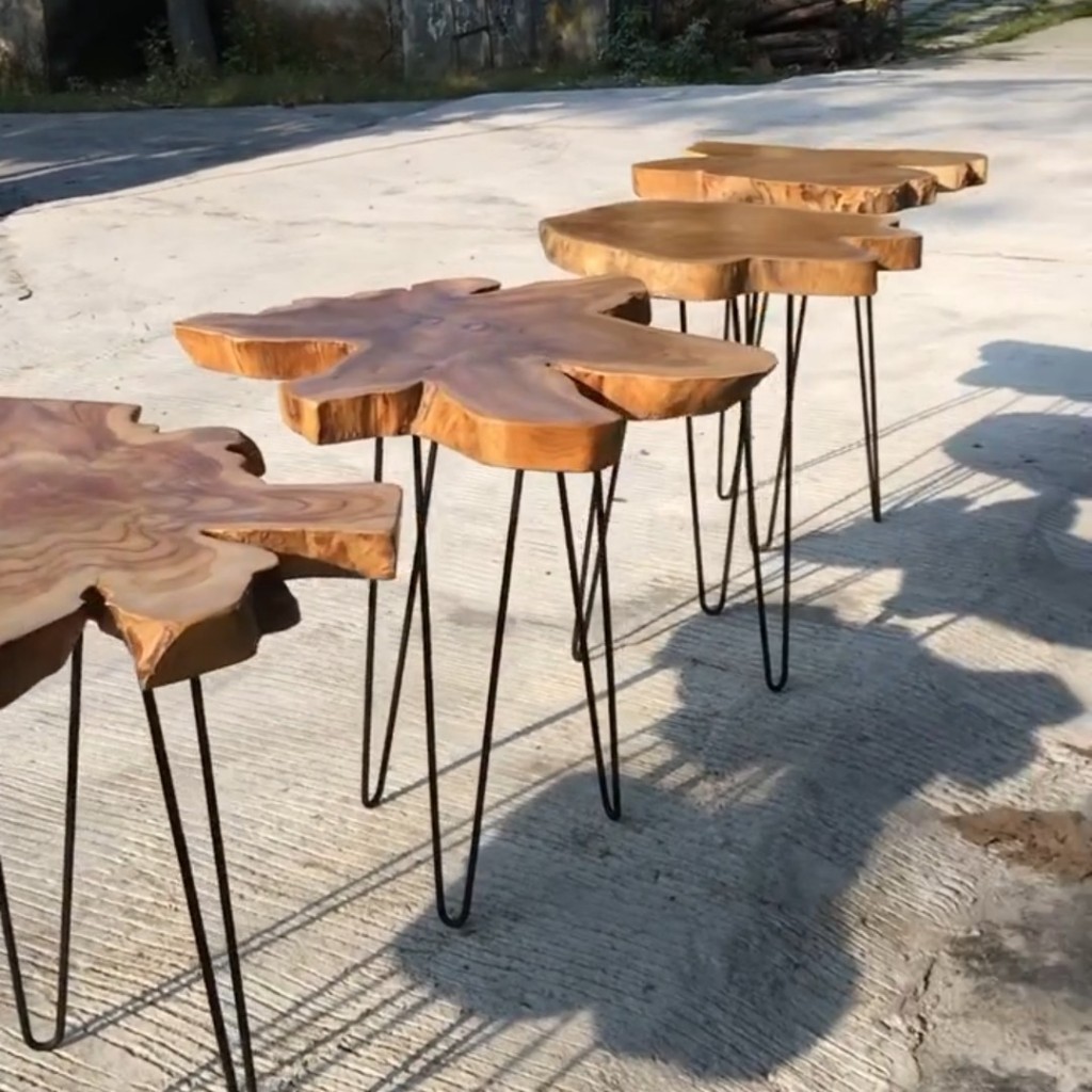 TERMURAH Meja Akar Jati Murah kaki besi unik - Meja Teras Kayu Solid & Meja Kopi Ruang Tamu Elegan