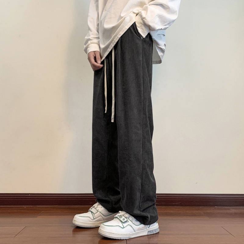 Celana Korduroy Pria Oversize Wide Leg Korean Style Warna Netral Bahan Tebal Corduroy Model Longgar Kulot Sederhana