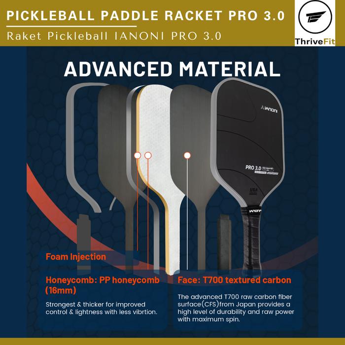 IANONI Pickleball Paddle PRO 3.0 T700 Raw Carbon / Raket Pickleball IANONI PRO 3.0 T700 Raw Carbon