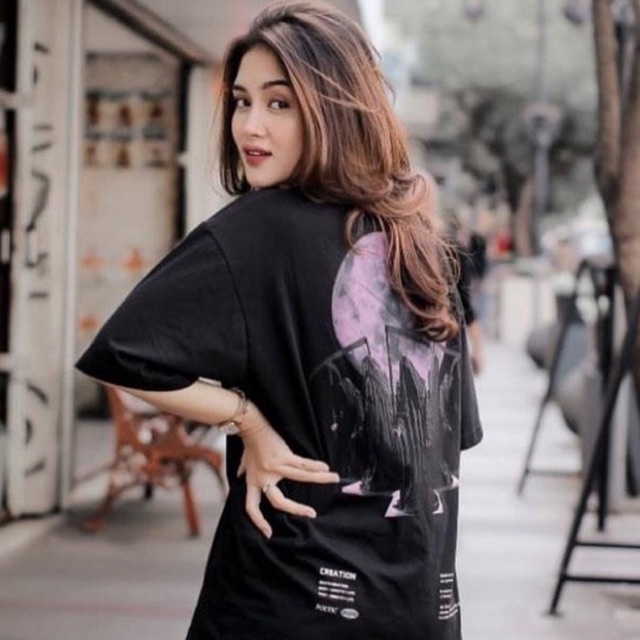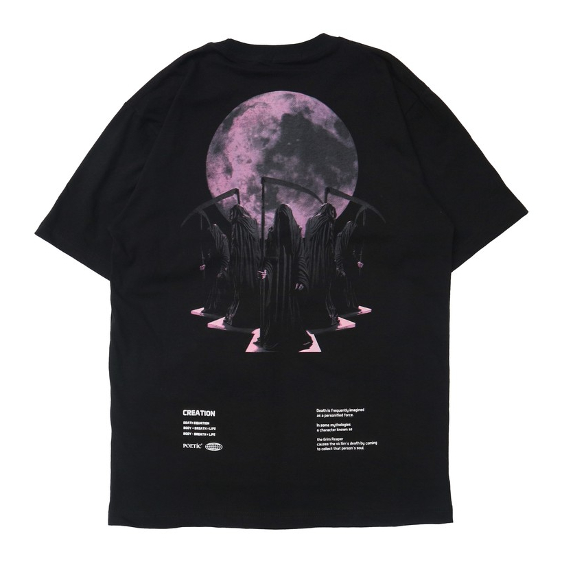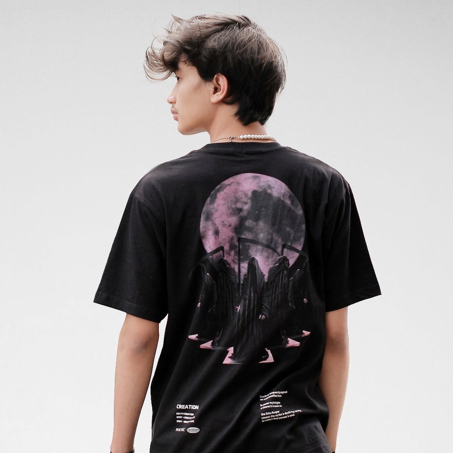 Kaos T-shirt Oversize Boxy Fit Grim Moon Unisex Warna Hitam Lengan Pendek Bahan Katun Lembut Streetwear Pria dan Wanita