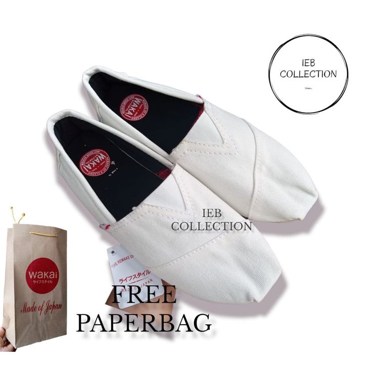 Sepatu Wakai slip on Putih Sepatu pria dan wanita size 36-43 free paperbag