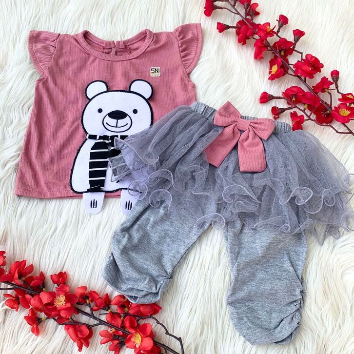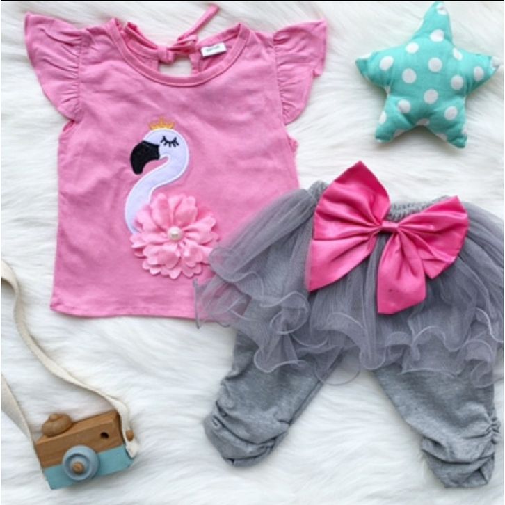 EKSKLUSIF Baju setelan kaos + celana rok tutu motif hewan lucu fashion anak bayi cewek perempuan murah -fla efars