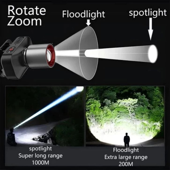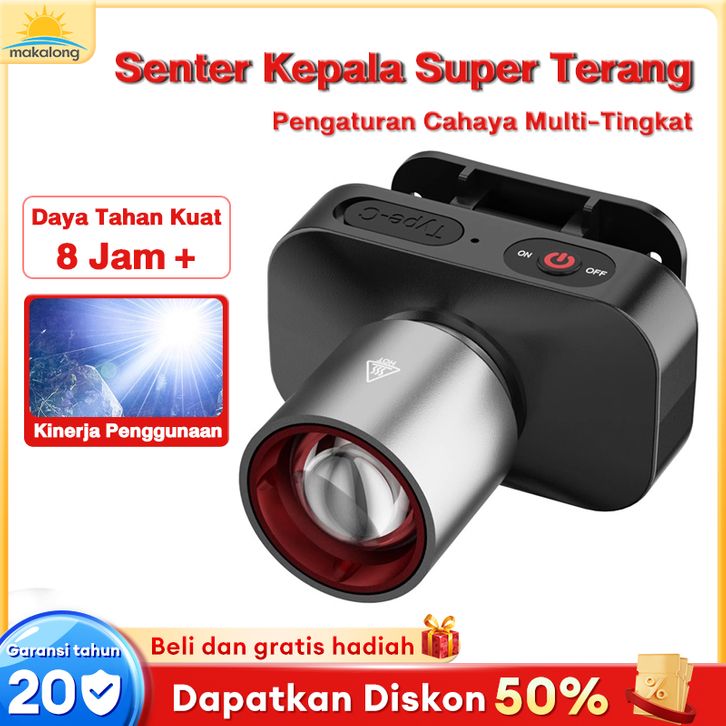 PROMO Senter Kepala Headlamp Lampu led untuk Kamping Mendaki dan Darurat Bisa Zoom Teleskopik asolg