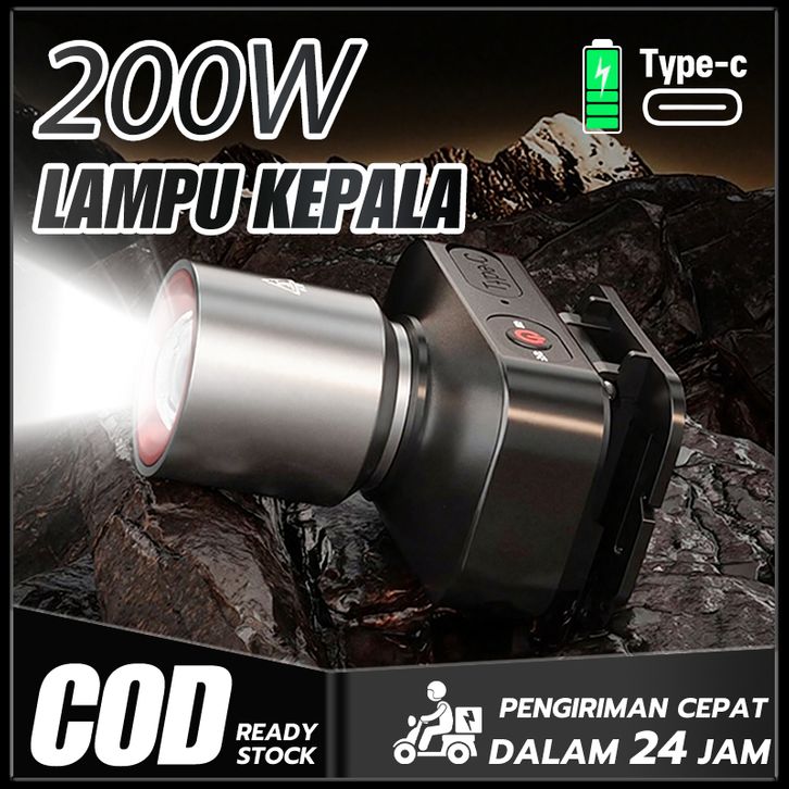 NEW Headlamp outdoor Senter kepala Zoom Waterproof USB RECHARGEABLE F-T51 Multifungsi untuk Camping dan Memancing