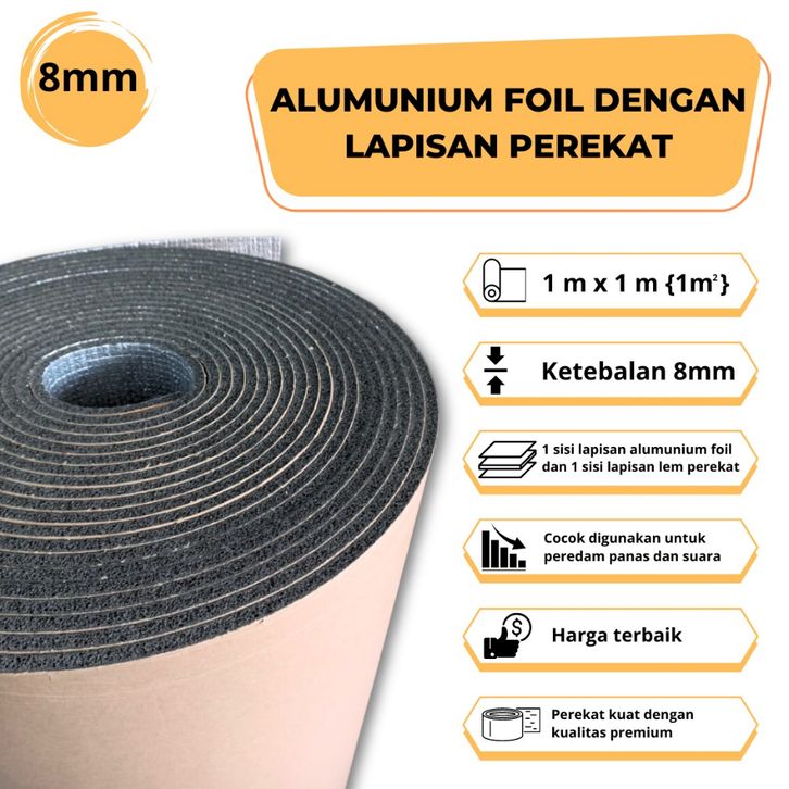 TERLAKU ALUMUNIUM FOIL 8mm, U/ PEREDAM PANAS PABRIK, MOBIL, THERMAL ALUMUNIUM ugahb