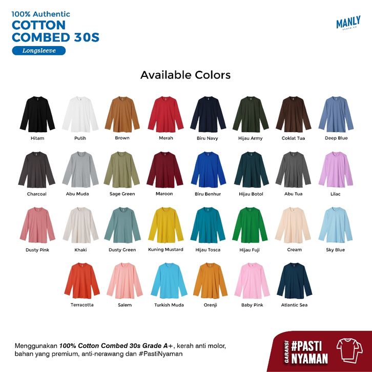 1.Pjg-PinkBaby, 10. Pjg-SageGreen, 11. Pjg-Dusty Green, 12. Pjg-Orenji, 13. Pjg-Abu Muda, 14. Pjg-Deep Blue, 15. Pjg-Dusty Pink, 16. Pjg-Lilac, 17. Pjg-Sky Blue, 18. Pjg-Hitam, 19. Pjg-Putih, 2. Pjg-Salem, 20. Pjg-Brown, 21. Pjg-MerahSpesial, 22. Pjg-Navy, 23. Pjg-HijauArmy, 24.Pjg-CoklatTua, 25. Pjg-Burgundy, 26. Pjg-Biru Benhur, 27. Pjg-Hijau Botol, 28. Pjg-Abu Tua, 29. Pjg-Charcoal, 3. Pjg-Cream, 30. Pjg-WoodYellow, 31. Pjg-MapleBrown, 32. Pjg-Magenta, 33. Pjg-Atlantic Sea, 4. Pjg-Khaky, 5. Pjg-Hijau Tosca, 6. Pjg-Turkis Muda, 7. Pjg-Mustard, 8. Pjg-Teracota, 9. Pjg-Dusty Yellow