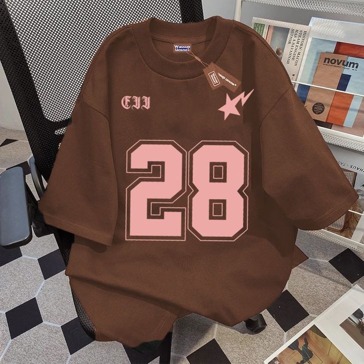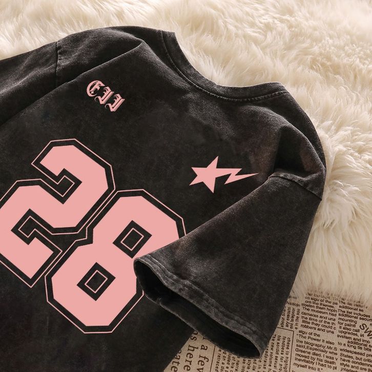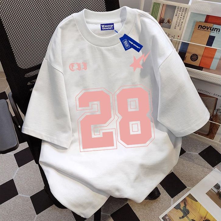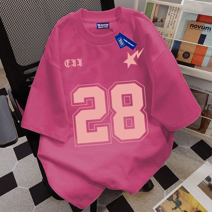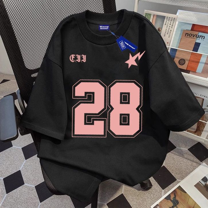 NEW BOOMBAP American retro Style T-shirt Oversize Pink letter 28 Print top| Kaos Wanita Hitam | Kaos pria dan
