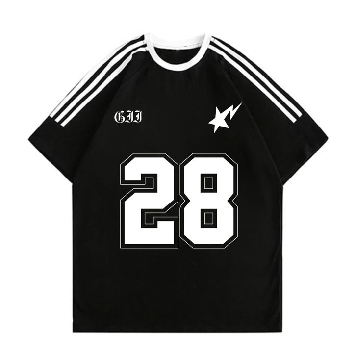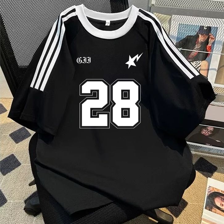 TERBARU Jessica Tshirt Lengan Pendek Garis Tiga Kaos Oversize Korean Style Motif Nomor Angka 28 Bahan 100 Cotton