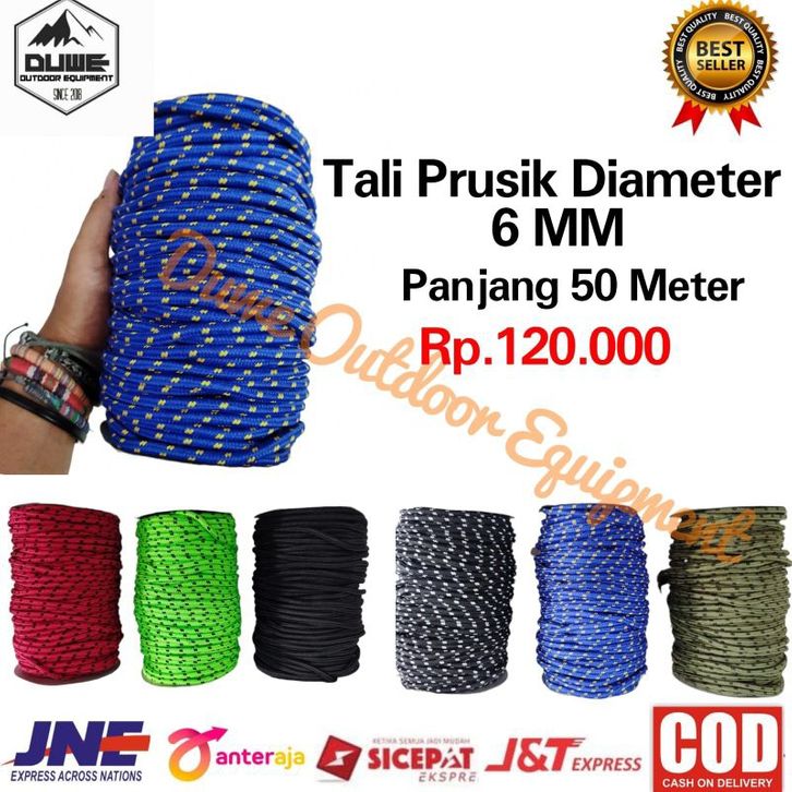NEW Tali Prusik Rol Ukuran 6mm Panjang 50 Meter Termurah adocb