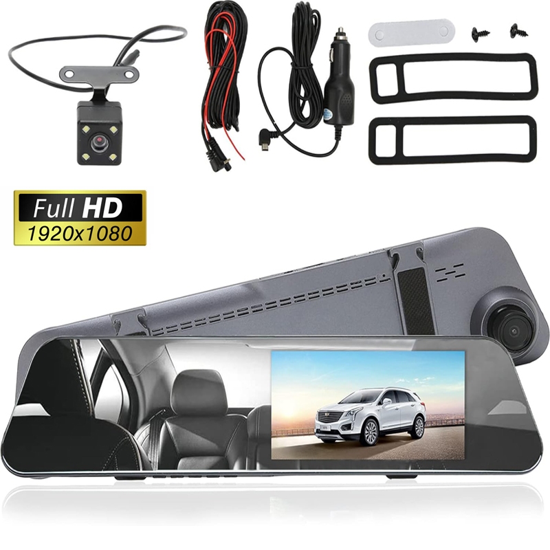 Kaca Spion Kamera Dasbor DVR Dual Kamera Dashcam 1080P 4.3Inch Depan Belakang Camera Perekam Mobil