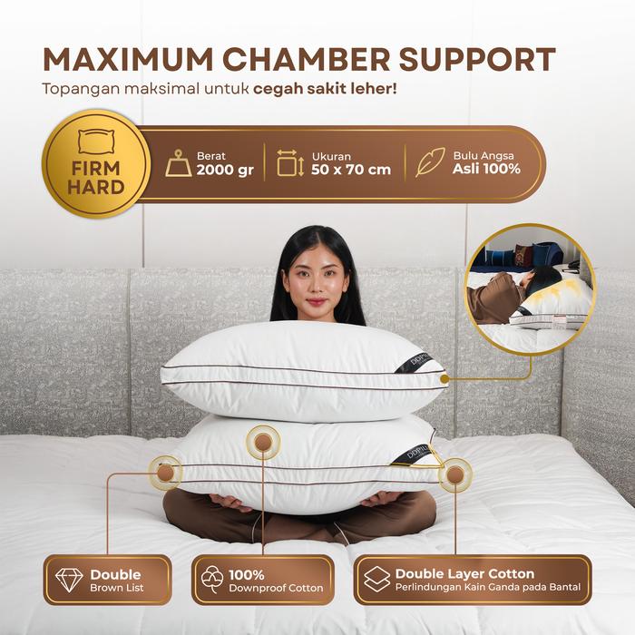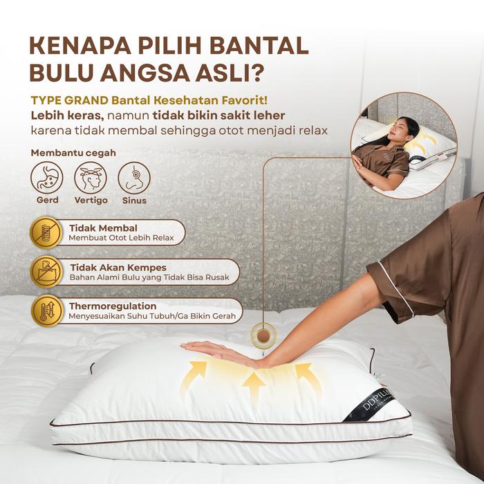 DDPillow Set 2 Bantal Guling Hotel Bulu Angsa Asli, Type Grand (Hard) / Bantal Tinggi / Bantal Gerd