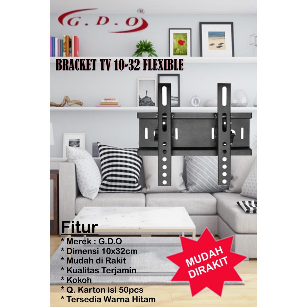 Bracket TV Led LCD GDO 26-55 inch/10-32inch Besi Tebal Dan mudah di rakit