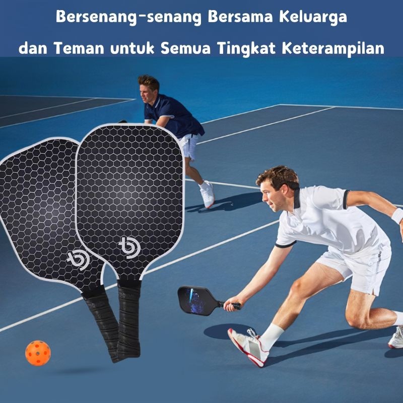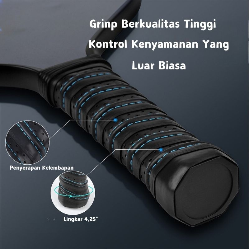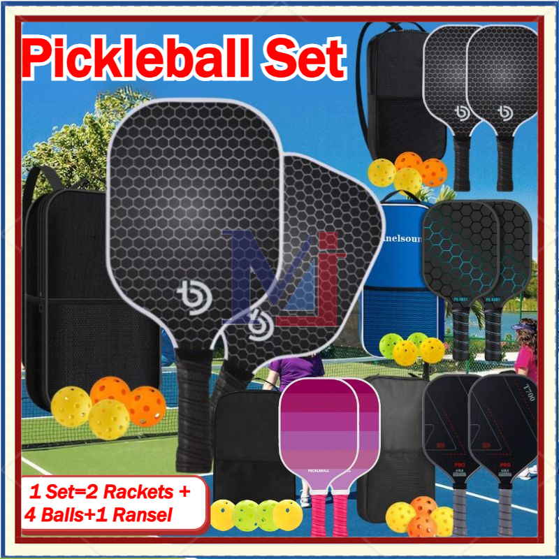 1Set Pickleball Set Pickleball Paddle Raket Pickleball Bahan Serat Karbon Honeycomb Core Fiberglass Indoor Outdoor Pickl