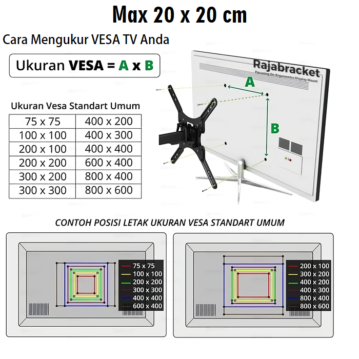 Braket Breket Bracket TV 43 32 40 24 27 22 19 14 Inch, Universal Semua Merk TV Bisa Nunduk dan Tegak