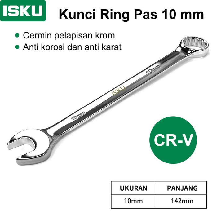 Isku Kunci Ring Pas 10 Mm Bolak Balik Spanner Wrench Bahan Baja Chrome Vanadium/Plum Blossom Open End Combination Wrench