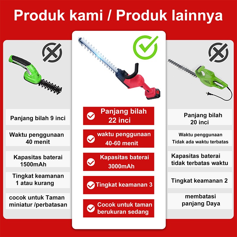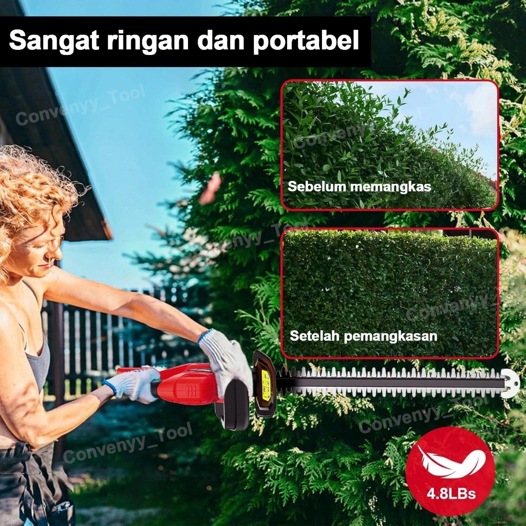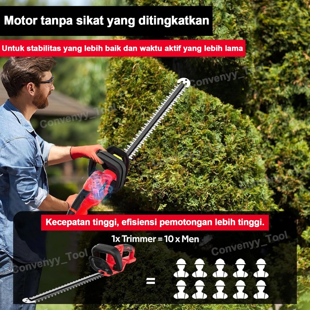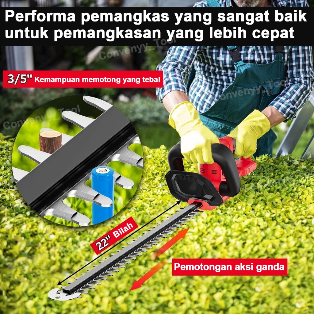 Convenyy Mesin Potong Dahan Cordless Hedge Trimmer Pemangkas lindung nilai baterai lit E3 alat pemangkasan taman